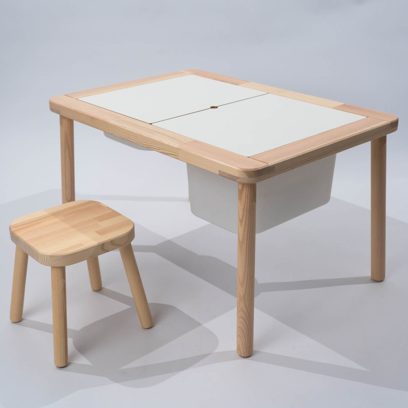 The FLISAT children's table offers a spacious and sturdy surface for play, study, or creative activities. Made from durable solid wood with a natural finish, itโs designed to withstand everyday use. Its simple, adjustable design fits seamlessly into any room, making it a perfect addition to playrooms or bedrooms.