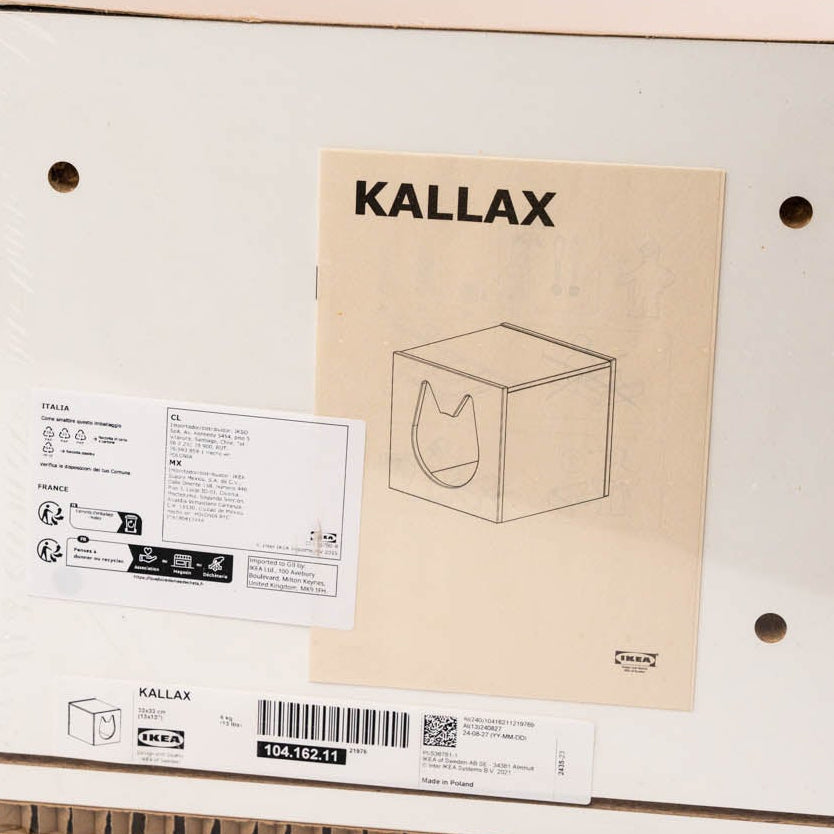 The KALLAX cat house is a cozy and stylish addition to your KALLAX shelving unit. Designed to fit perfectly into the cube, it provides a comfortable hideaway for your cat while seamlessly blending with your décor. The clean white finish and durable construction make it a practical and attractive solution for your feline friend.